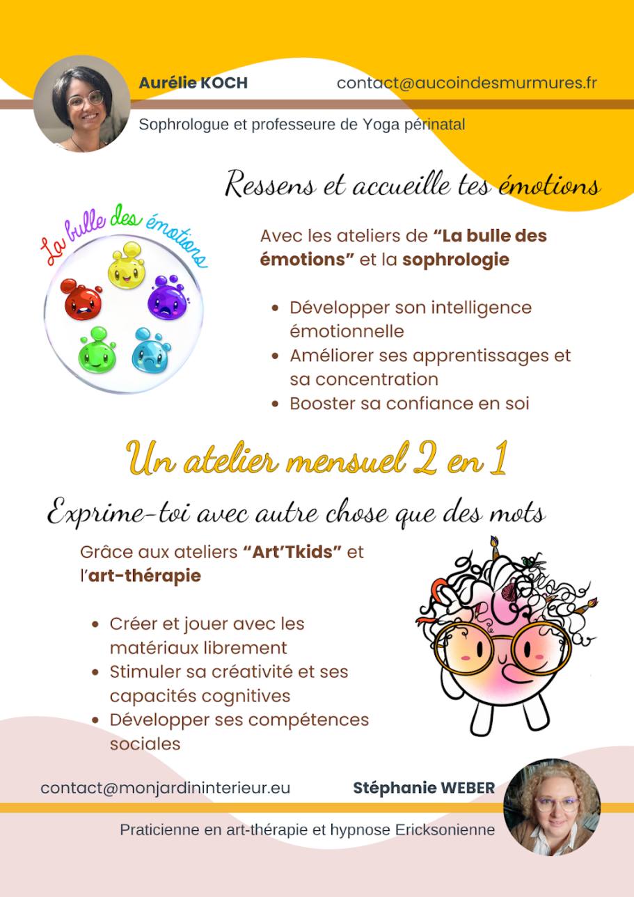 1h de sophrologie avec Aurélie et 1h d'Art-Thérapie avec moi afin de mieux comprendre et écouter ses émotions.